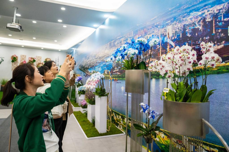 在第二届湖南花卉苗木博览会现场,观众在拍照。新华社记者陈思汗 摄
