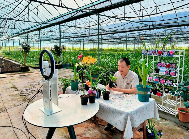 “组培技术的引进,让花木品种规模化培育按下‘加速键’;设施农业的发展,让种苗培育更加高效、精准;直播电商的兴起,让花木‘飘香’到更远地方。”刘访说。