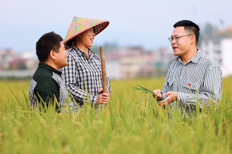湖南省邵阳市洞口县组织干部走进田间地头,听民声、纾民困,走好晚稻抗旱保收“最后一公里”(2022年10月摄) 刘金汉摄