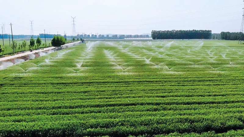 山东省肥城市安驾庄镇一排排“地埋”式喷灌设备正在进行浇水作业(2024年3月24日摄) 受访单位供图