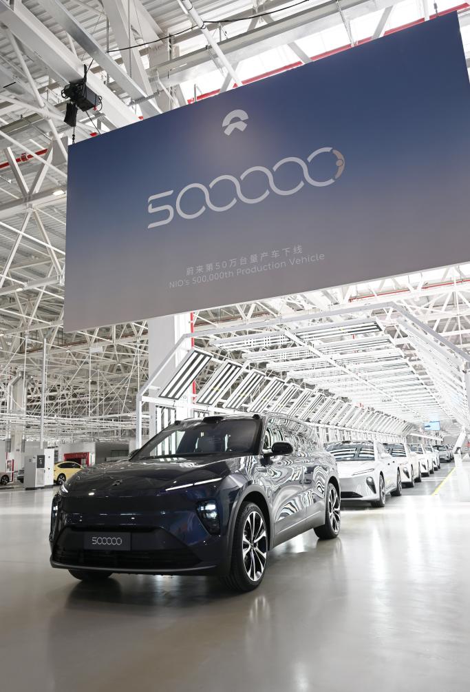 在安徽省合肥市新桥智能电动汽车产业园蔚来合肥第二工厂,蔚来第50万台量产车下线(2024年5月9日摄)。 新华社记者 周牧 摄