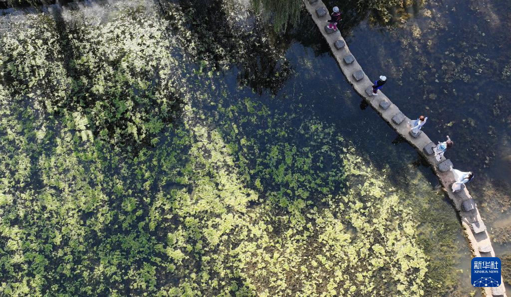 11月7日,江永县勾蓝瑶寨村民在一处古井旁洗衣服(无人机照片)。新华社记者 赵众志 摄pagebreak