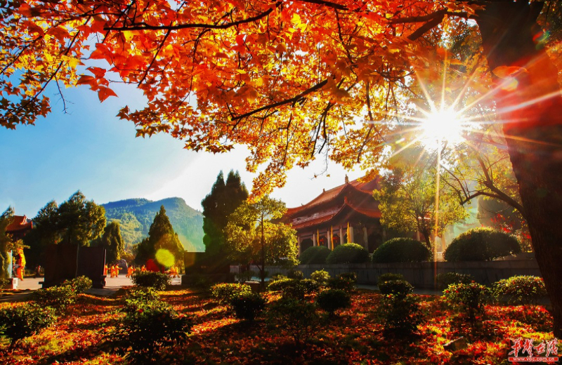 虽已立冬,但九嶷山舜帝陵秋意正浓。火红的枫叶与红墙黛瓦、参天古树交相辉映,满目色彩斑斓。每年红叶最佳观赏期为11月初至12月中旬。