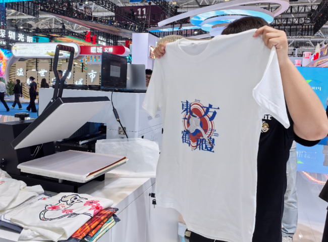 通过山海APP的二创功能,能将从文物上提取出来的纹样和图案打印在T恤上并带走。