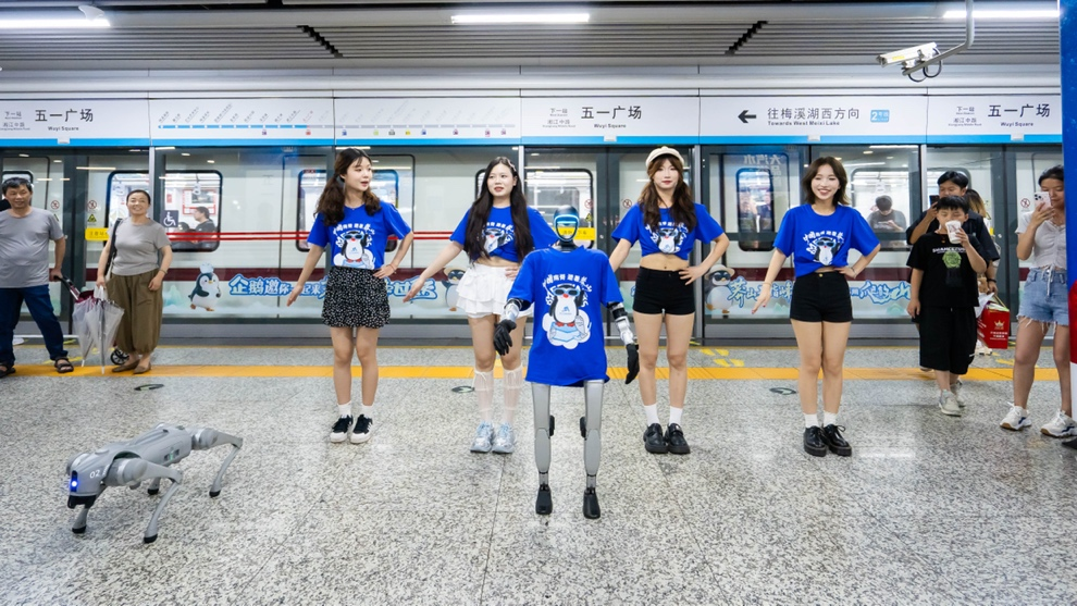 △莽山五指峰“清凉企鹅小队”和机器人空降长沙地铁,送来一场“赛博清凉”