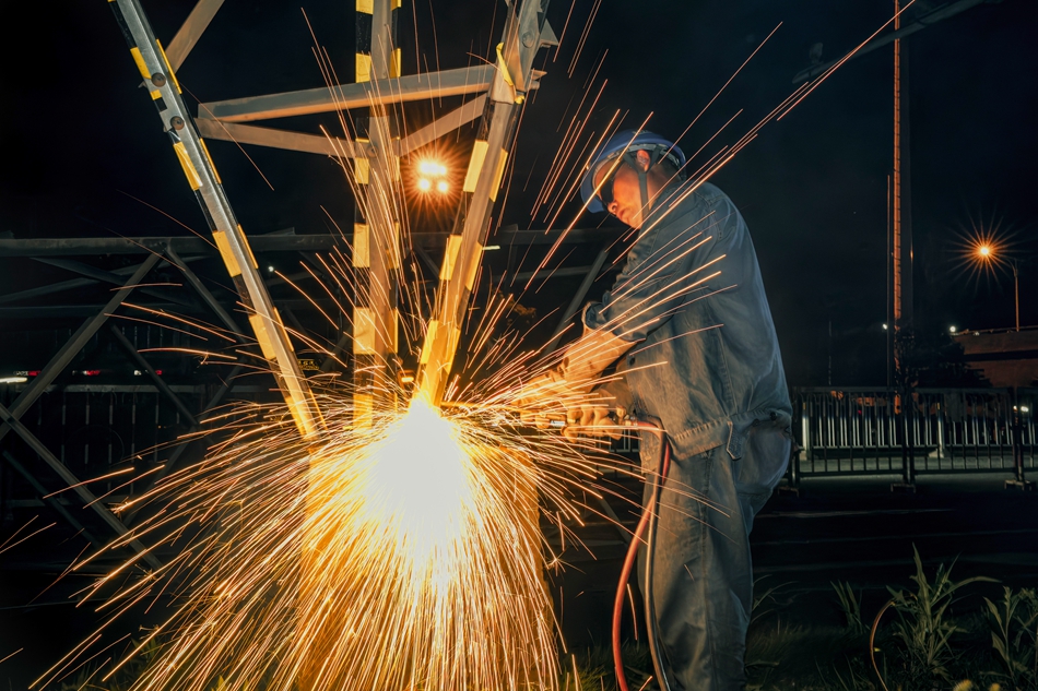 7月1日21:00,国网长沙供电公司工作人员对黑石铺110千伏学罗大新线铁塔进行拆除。 巫宇龙 摄pagebreak
