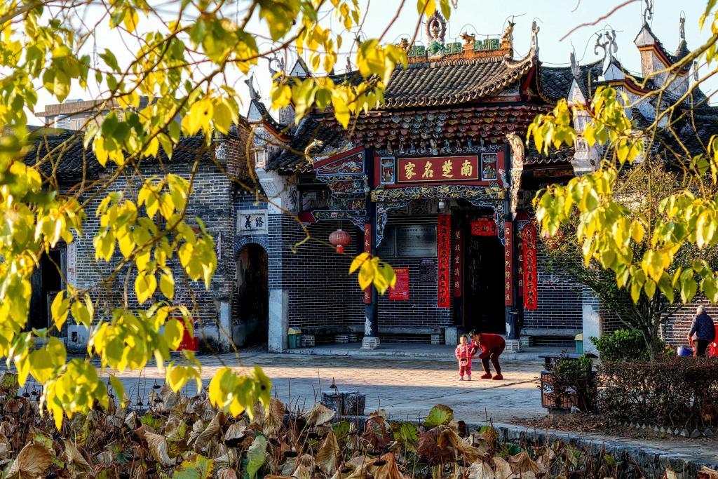 11月24日,村民在郴州汝城县金山村卢氏家庙(叙伦堂)前玩耍。卢氏家庙(叙伦堂)于2013年被列为全国重点文物保护单位。