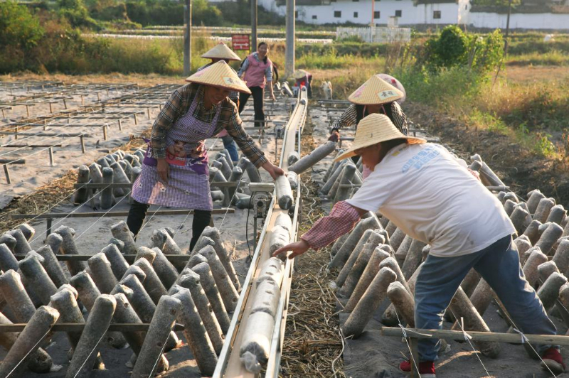 在浙江省云和县赤石乡麻垟村的稻耳轮作小微产业园里,绿缘农产品专业合作社负责人沈飞林带领村民,将一个个打过孔的菌棒码放在已完成收割的稻田里。