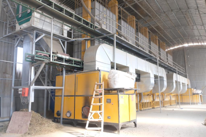 湖南省岳阳市汨罗市桃林寺镇的晚稻烘干作业现场。(郑波 摄)