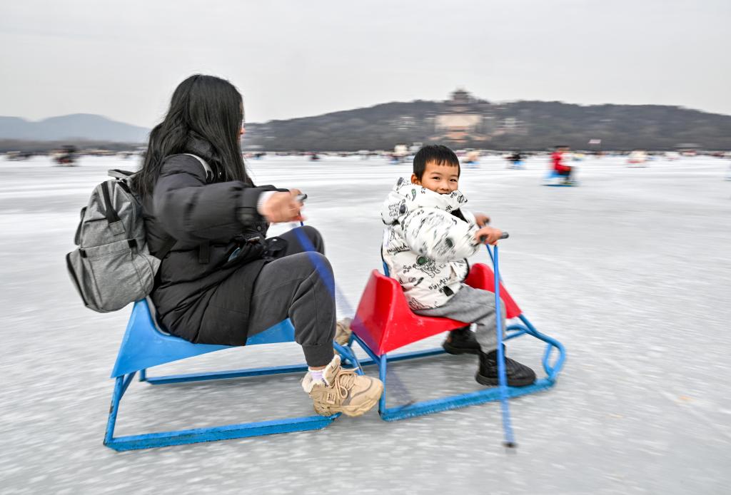 1月1日,游客在颐和园冰场玩冰车。新华社记者 陈晔华 摄