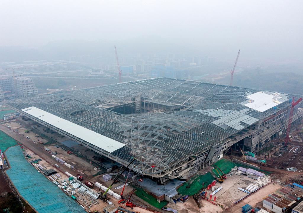 1月10日拍摄的西部(重庆)科学城科学会堂项目施工现场(无人机照片)。新华社记者 刘潺 摄