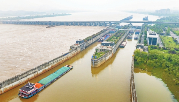 4月7日,船舶有序通过长沙湘江综合枢纽船闸。当天,省水利厅启动洪水防御Ⅳ级应急响应。湖南日报全媒体记者 辜鹏博 通讯员 唐晗博 摄影报道