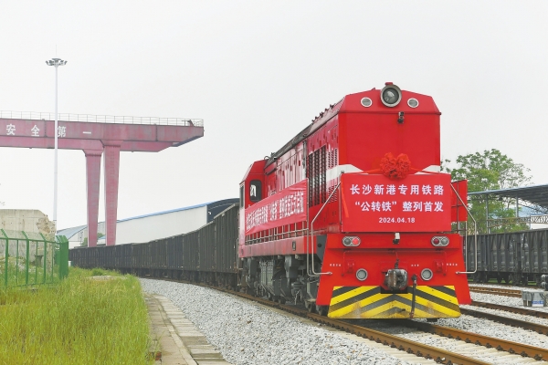 4月18日,省港航水利集团所属城陵矶港口集团长沙新港专用铁路完成“公转铁”整列发送业务首发。