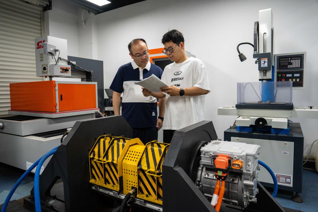 在湖南大学智能运载系统创新中心三电性能测试实验室,邵海东和团队成员正在对一款即将上市的新能源汽车驱动电机进行健康管理测试。