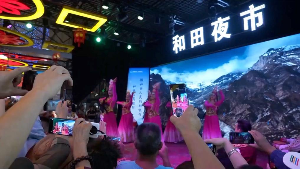 新疆和田夜市成了不少游客的“打卡地”,各种各样的美食摊位前坐满了食客。