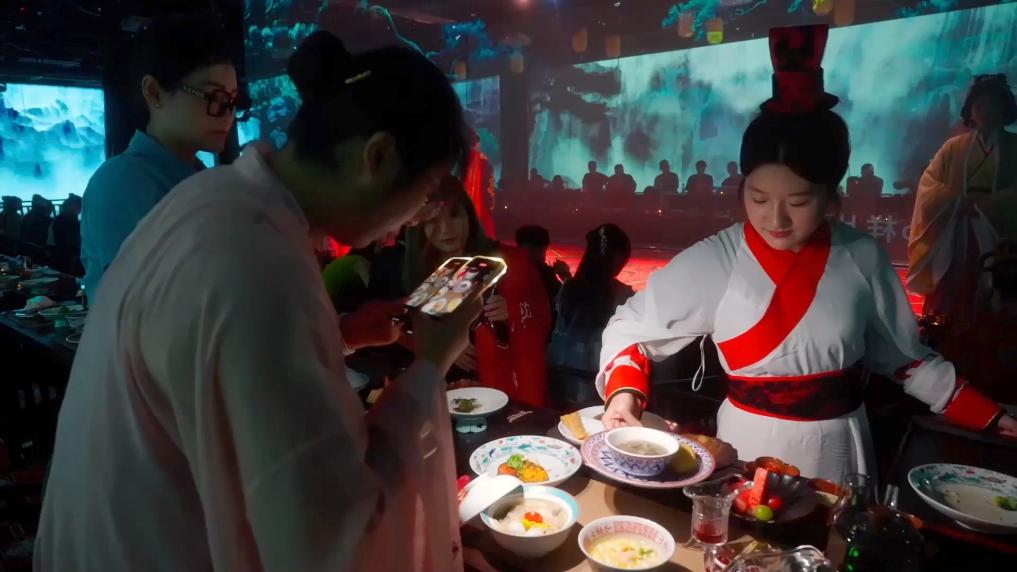 为了提升用餐体验,项目还提供专业的汉代妆造服务,让游客在专业团队的打造下,实现从现代游客到“汉代贵族”身份的转变。