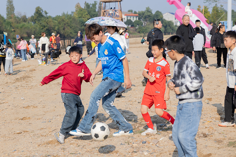 现场还设置迷你“村BA”“村超”体验区,游客们与金洲本土足球队、篮球队的实力球员并肩互动、切磋球技。据了解,今年宁乡金洲万鑫精工篮球队征战贵州“村BA”勇夺全国总决赛季军,宁乡金洲星邦智能足球队挺进“村超”全国八强,让“体育强镇”正成为小镇新名片。