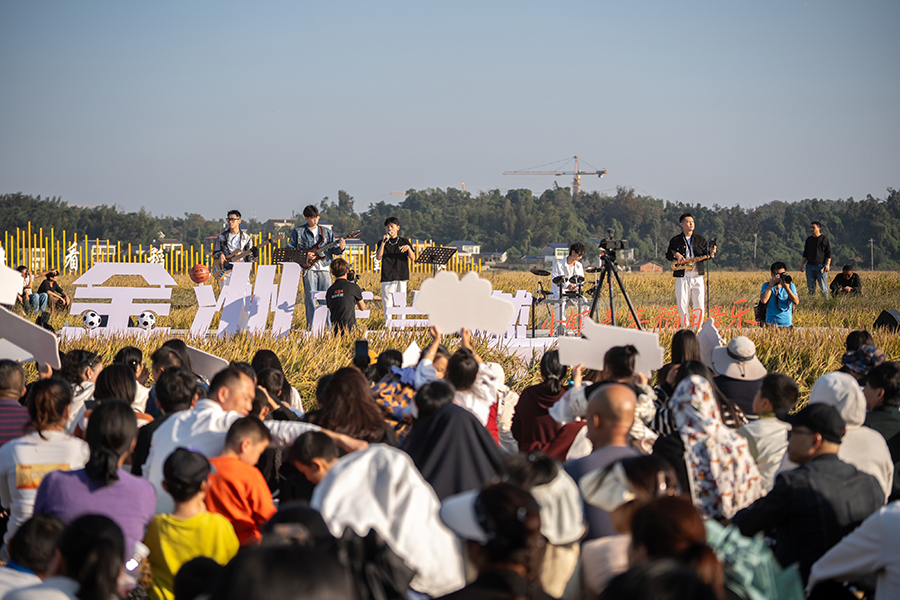 风吹稻浪,音乐响起,现场的热情瞬间被点燃,台上小镇青年的激情唱跳与台下乡民游客的欢歌呐喊相互激荡,金色的丰收稻田蔓延成律动的欢乐海洋……11月15日,小镇青年稻田音乐会在宁乡市金洲镇箭楼村拉开帷幕,熙熙攘攘的人群在音乐中、在野趣间、在美食里体验农文体旅深度融合的小镇时光。