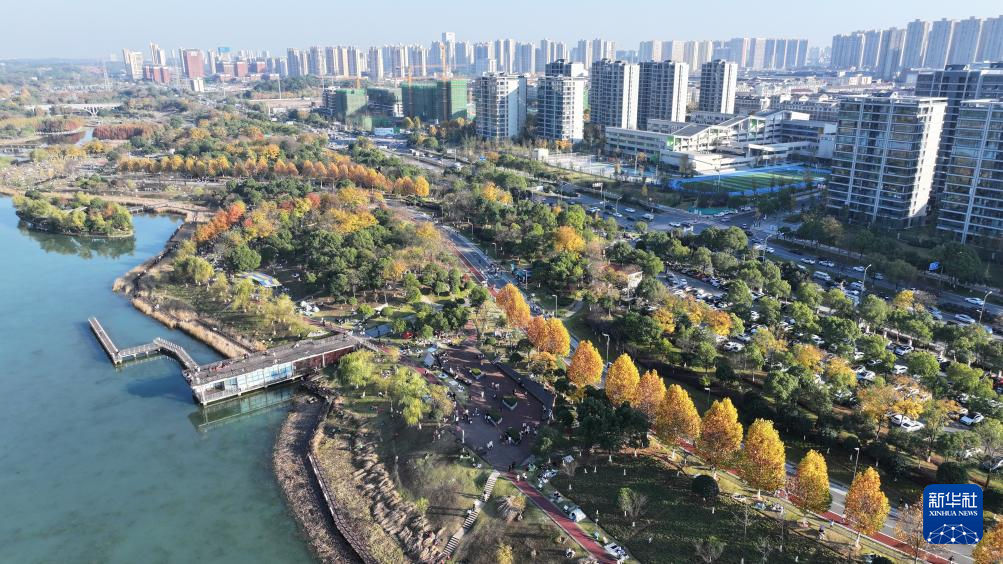 11月30日,市民在松雅湖国家湿地公园内游玩(无人机照片)。新华社记者 陈振海 摄