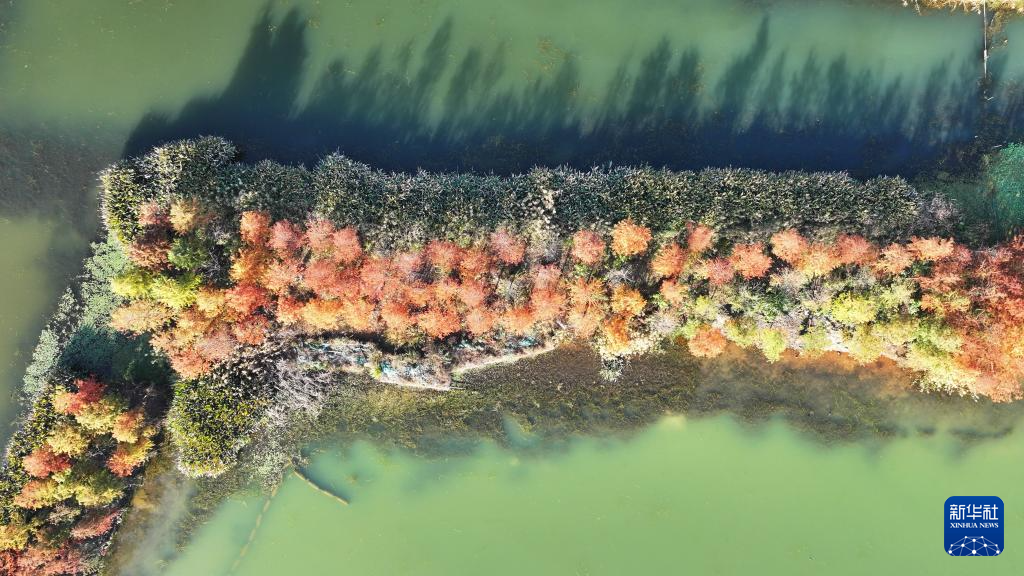 近日,位于湖南省长沙市的松雅湖国家湿地公园内水杉树叶颜色开始转红,色彩斑斓的美丽图景吸引不少市民前来游玩打卡。pagebreak