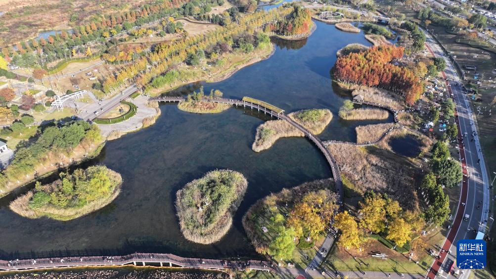 这是11月30日拍摄的松雅湖国家湿地公园景色(无人机照片)。新华社记者 陈振海 摄pagebreak